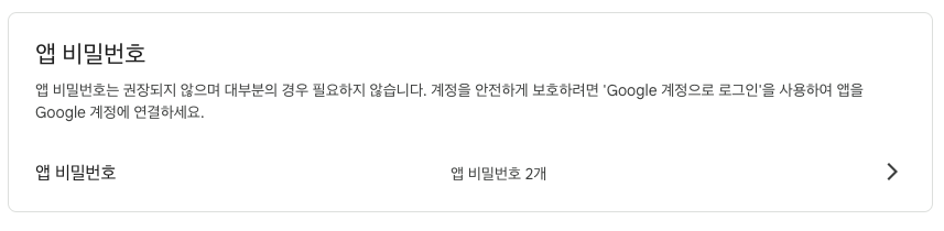 2단계 인증이 설정되어있어야만 앱 비밀번호를 발급받을수있다.
